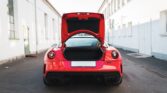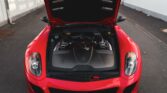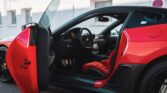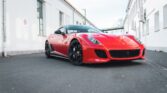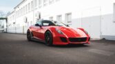 This 599 features a GTO-style bodykit, finished in red hue with carbon-fibre and matte black accents, as well as black ‘Scuderia Ferrari’ wing shields and black-tinted tail light lenses, over a red and black Alcantara-trimmed cabin featuring a yellow tachometer and carbon-fibre inlays.